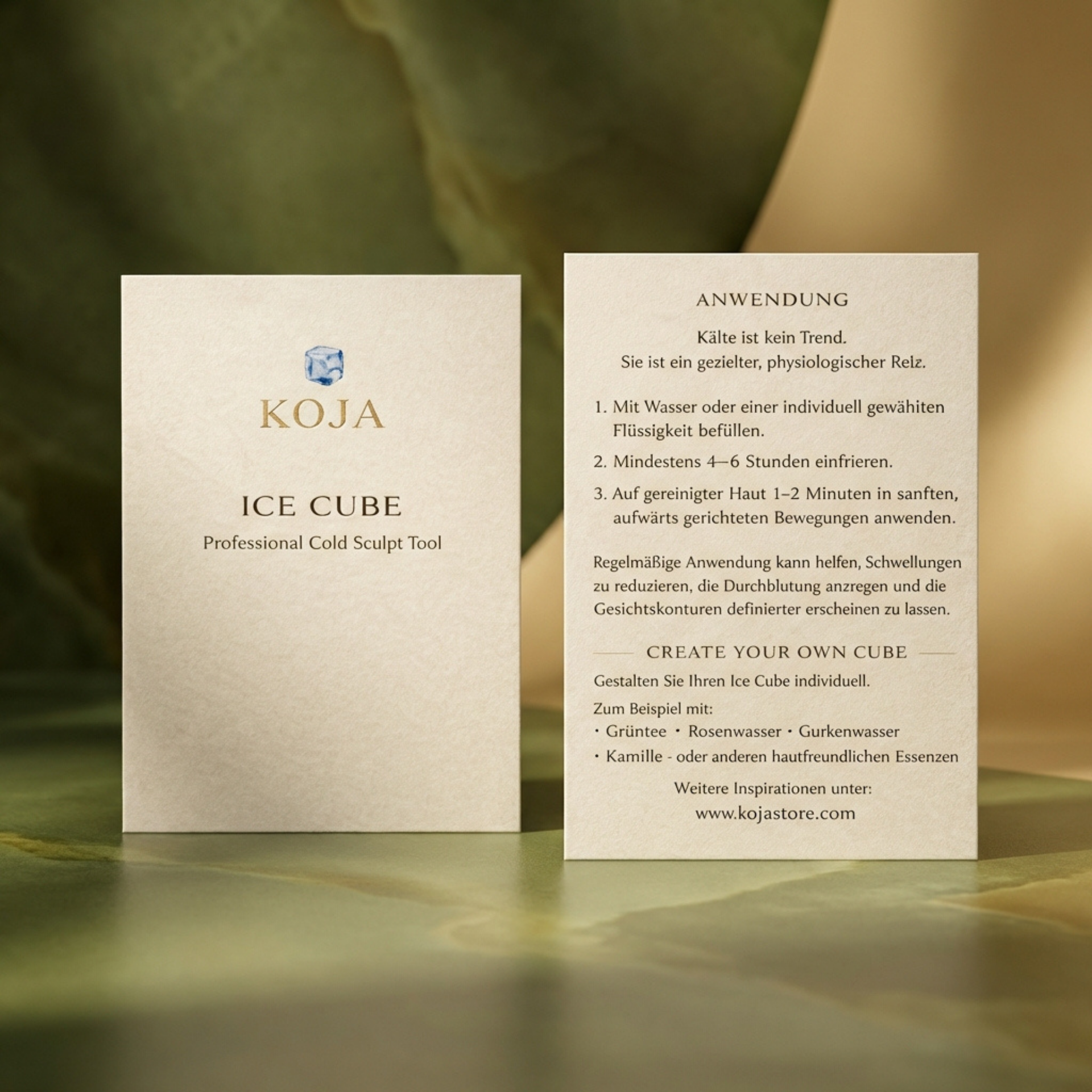 Der KOJA Cryo Cube besteht aus hochwertigen, sorgfältig ausgewählten Materialien und ist für die tägliche Anwendung konzipiert.