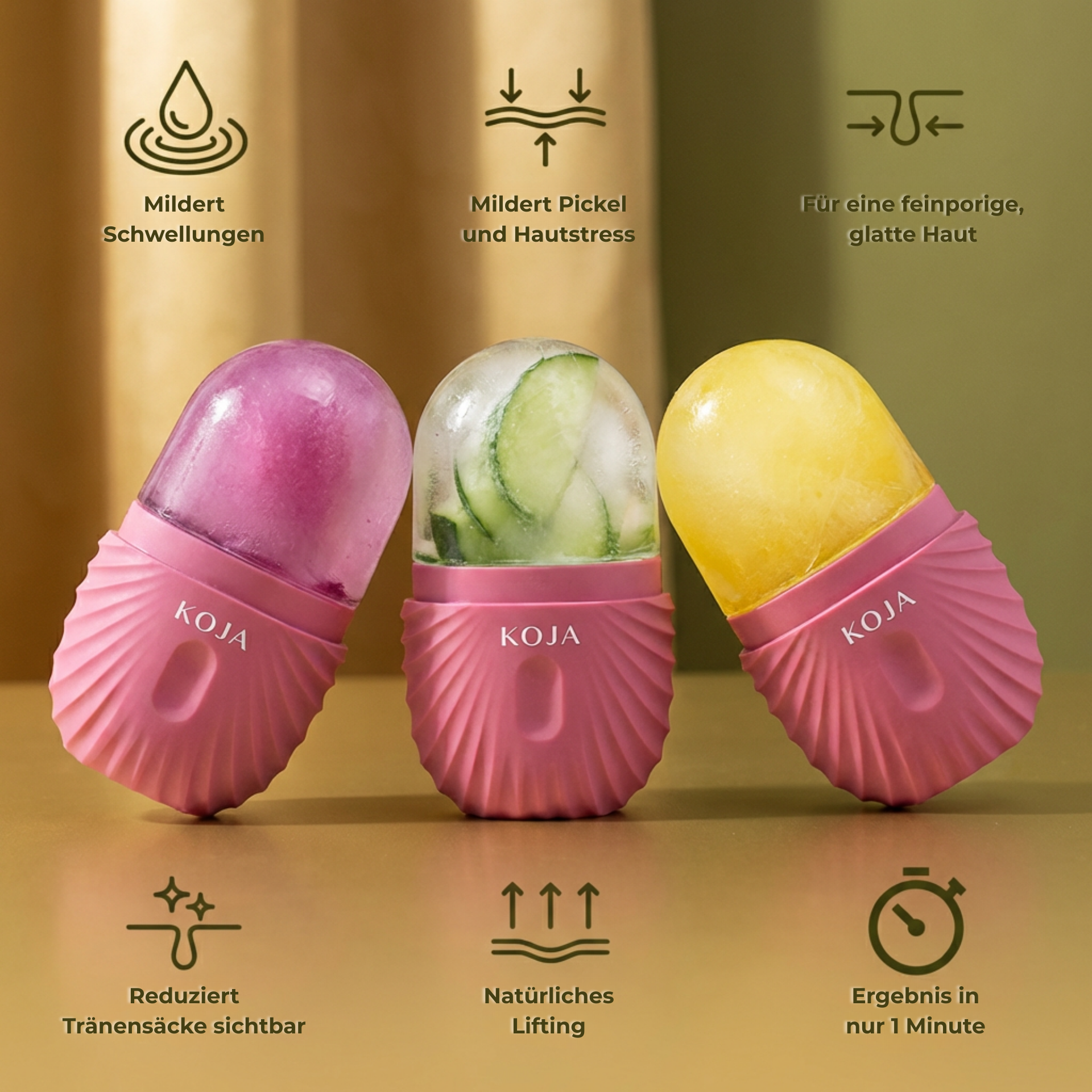 KOJA richtet sich an Frauen und Männer, die ihre Haut gezielt aktivieren, Schwellungen reduzieren und Konturen definieren möchten – unabhängig vom Hauttyp.