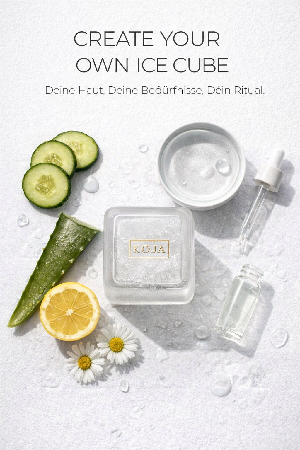 Mit dem KOJA Cryo Cube bestimmst du, was deine Haut bekommt. Fülle ihn nicht nur mit Wasser – sondern mit gezielten Wirkstoffen, die zu deinem aktuellen Hautzustand passen.